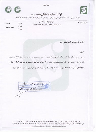 به گزارش روابطعمومی شرکت صنایع لاستیکی سهند، حسین صداقت، سرپرست و نایبرئیس هیئتمدیره این شرکت، در نامهای رسمی خطاب به محمدعلی دهقان دهنوی، رئیس کل